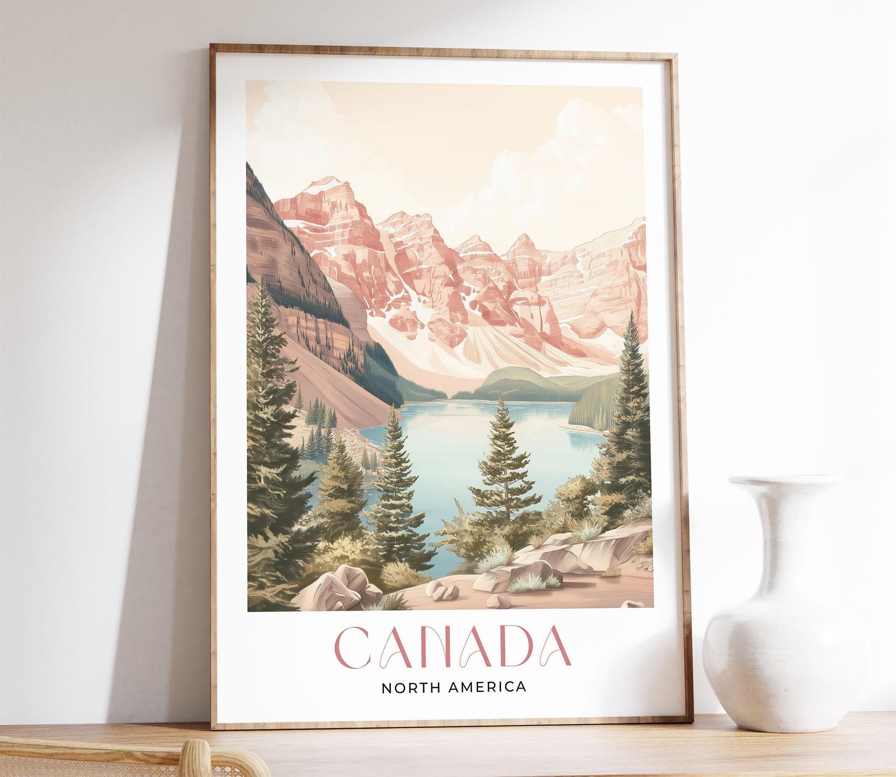 Please Note: This artwork is a stylised representation and does not depict a specific real-life view of Canada. It is designed to evoke the spirit and atmosphere of the location through a dreamy, artistic lens.