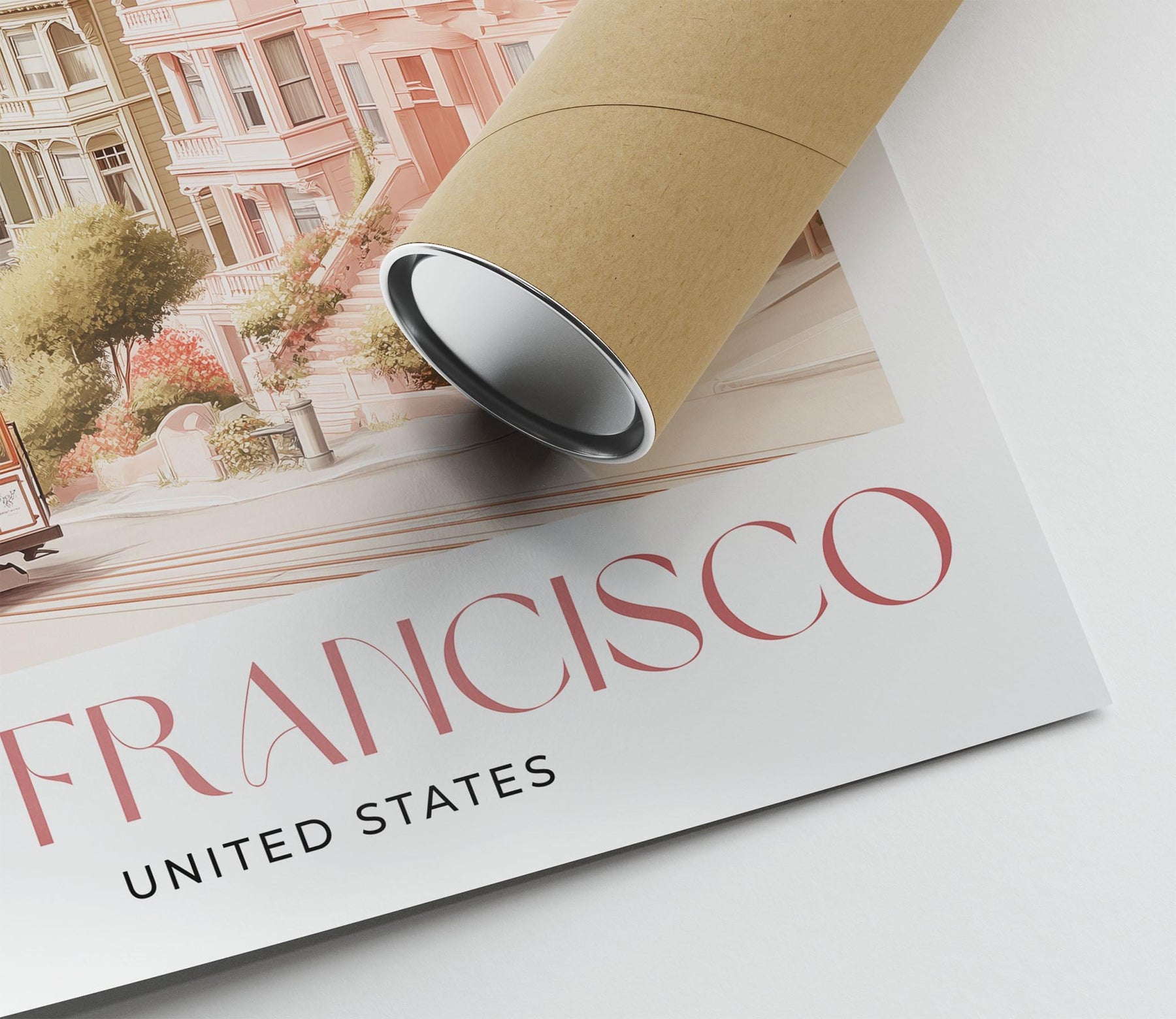Please Note: This artwork is a stylised representation and does not depict a specific real-life view of San Francisco. It is designed to evoke the spirit and atmosphere of the location through a dreamy, artistic lens.