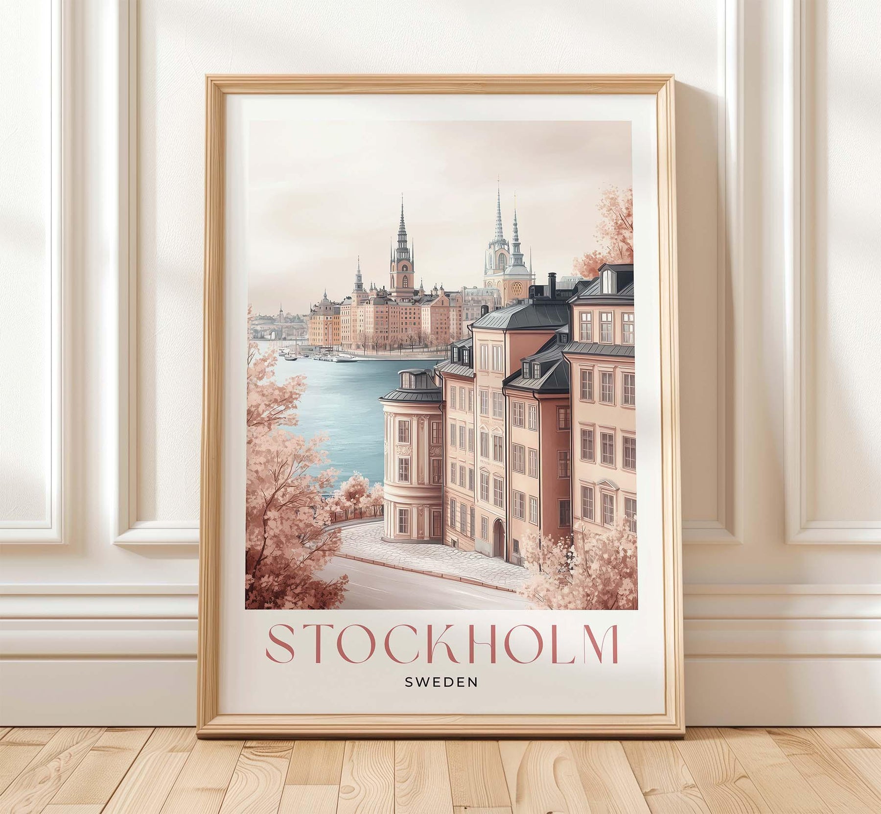 Capture the elegance of Stockholm with this pastel watercolour print, featuring soft beige and pink tones for a timeless, sophisticated look. This artwork evokes the serene beauty of Sweden’s capital, known for its harmonious blend of history and modernity. The delicate brushwork and muted palette make it a perfect addition to any home, bringing a sense of Scandinavian calm and charm.