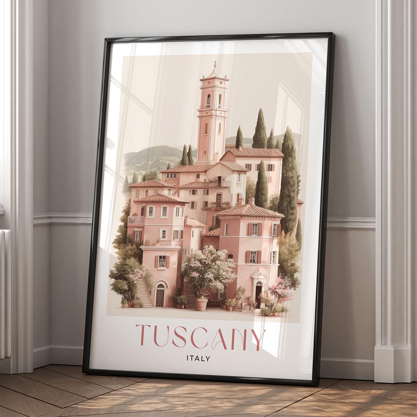 Please Note: This artwork is a stylised representation and does not depict a specific real-life view of Tuscany. It’s designed to evoke the spirit and atmosphere of the location through a dreamy, artistic lens.