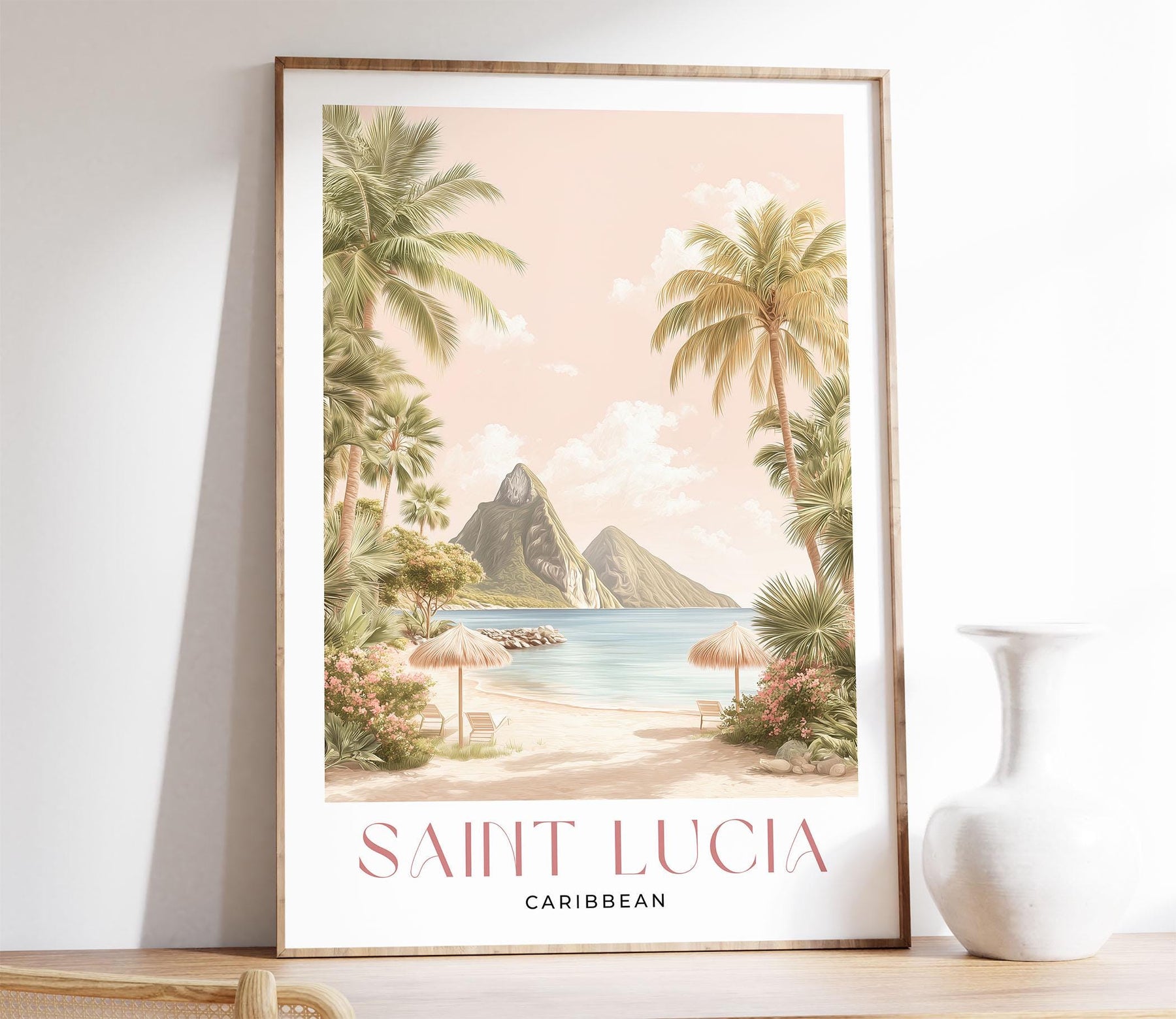 Perfect for coastal interiors, tropical dreamers, and lovers of island escapes, this piece brings a whisper of paradise into your space. Whether styled in a boho nook or a minimalist gallery wall, it evokes the gentle rhythm of Caribbean life and the timeless beauty of Saint Lucia’s shores.
